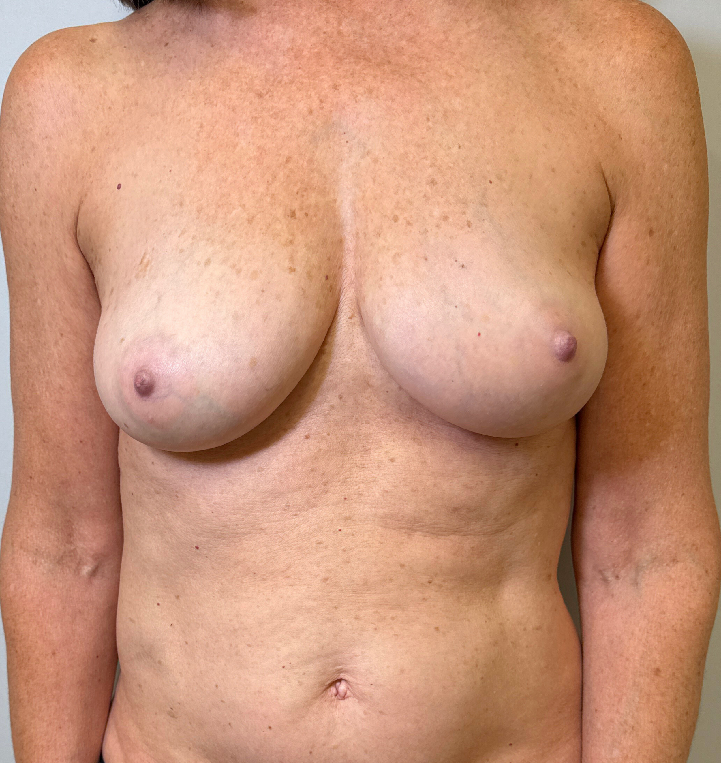 This lady had submuscular saline implants placed many years ago. Before kids, before her life changed. Now she is into triathalons and exercise. The implants just got in the way. She had them removed.