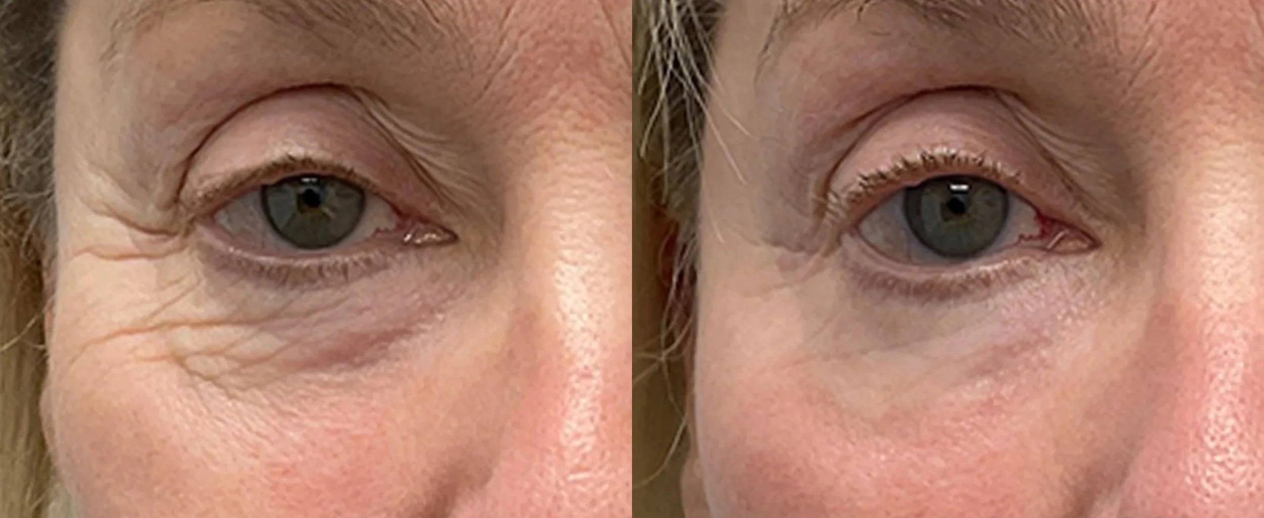 Under-eye crepiness or fine lines that make the eyes look older or more tired