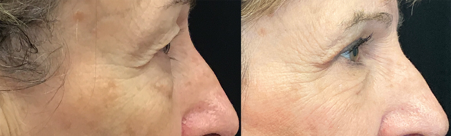 Crepey or thinning skin around the eyes, mouth, or neck due to age or collagen loss
