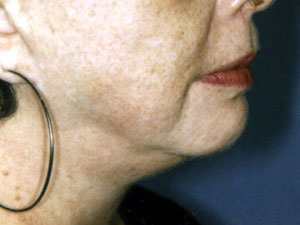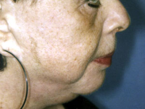 This 50 something year old had a few medical problems, and really wasn’t a candidate for any big surgical procedures, so she opted for something a little less surgical, but that fit her budget and recovery time schedule. A family reunion was coming up, and she just wanted to feel a little better about herself. I did a bit of liposuctioning under her chin, just under local anesthesia to remove any extra fat from right up underneath the chin. Then 4 weeks later she had a Thermage procedure in the office – a non-surgical method of skin tightening. No skin was removed! And the only incision she has is a .5″ scar under her chin. Wonderful and so fun for her!