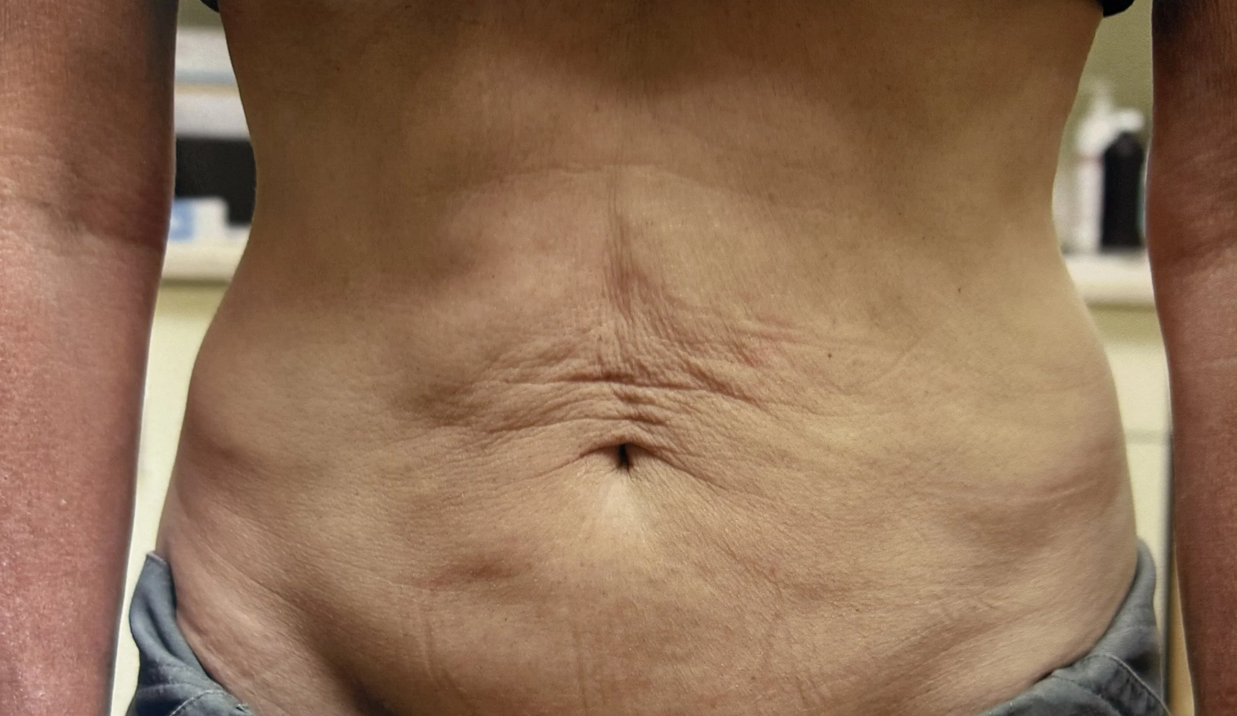Over the past decade we have had great success with Thermage devices on other parts of the body in addition to the face. This woman’s tummy is shown before and one month after treatment.